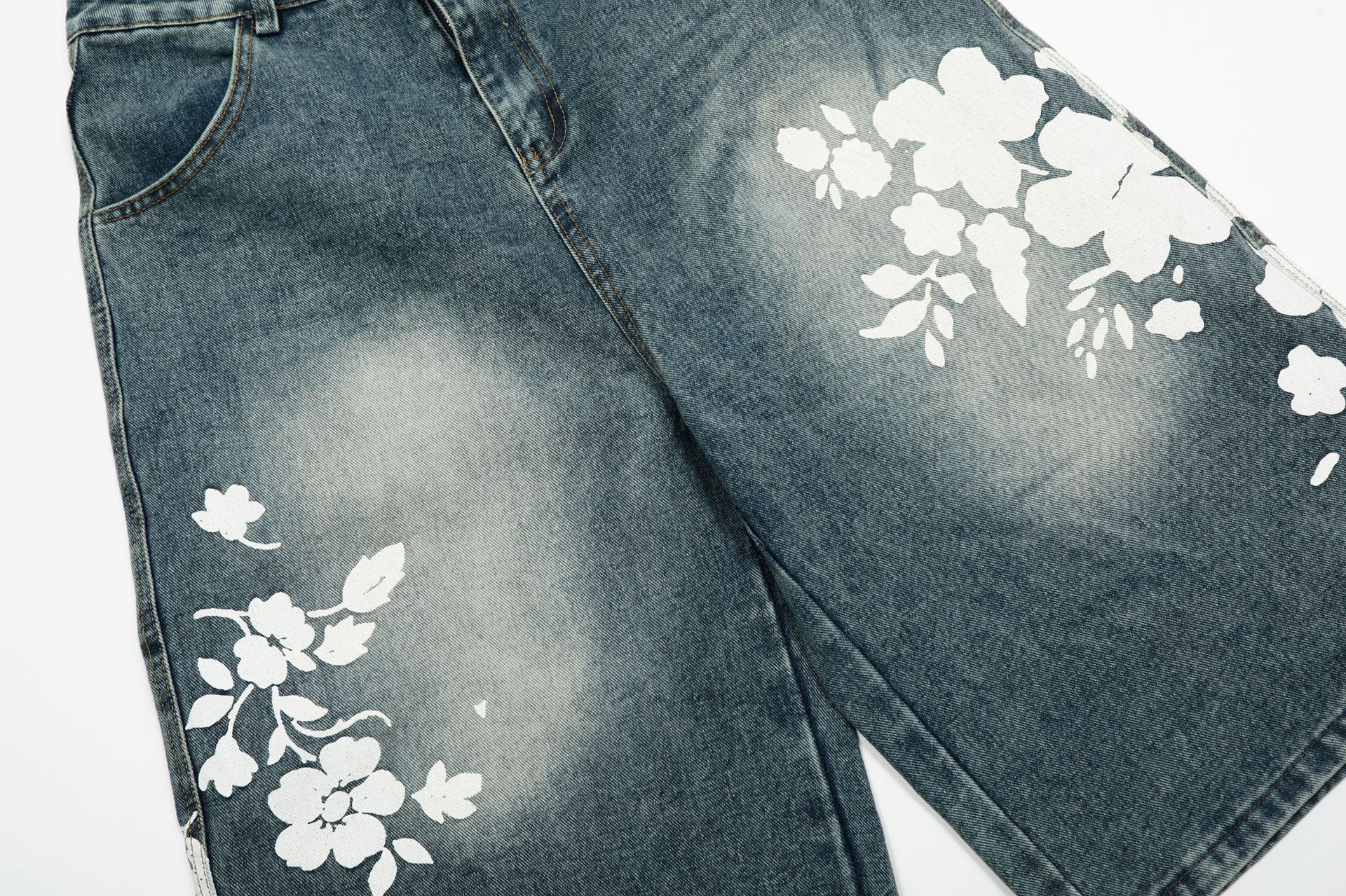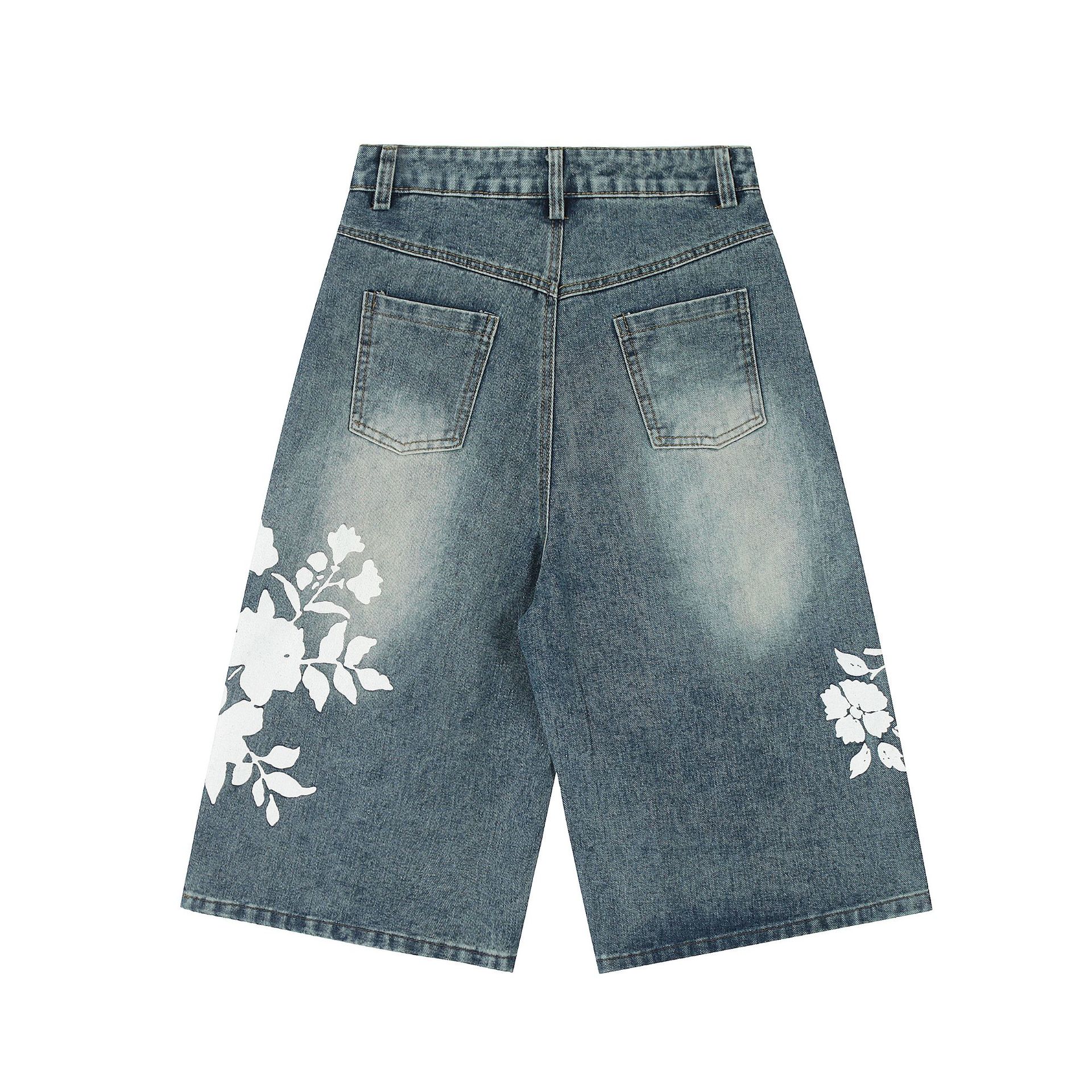 High-street Design Lace Print Slimming Wide-leg Cropped Pants