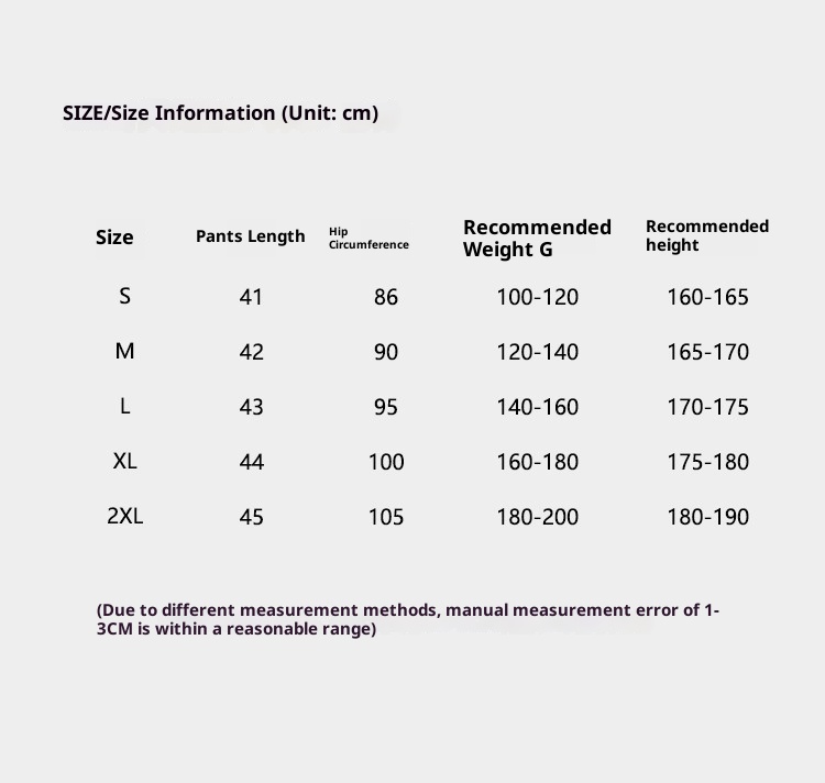 Size: S (50.00 kg-60.00 kg, M (60.00 kg-70.00 kg, L (70.00 kg-80.00 kg, XL (80.00 kg-90.00 kg, 2XL (90.00 kg-100.00 kg