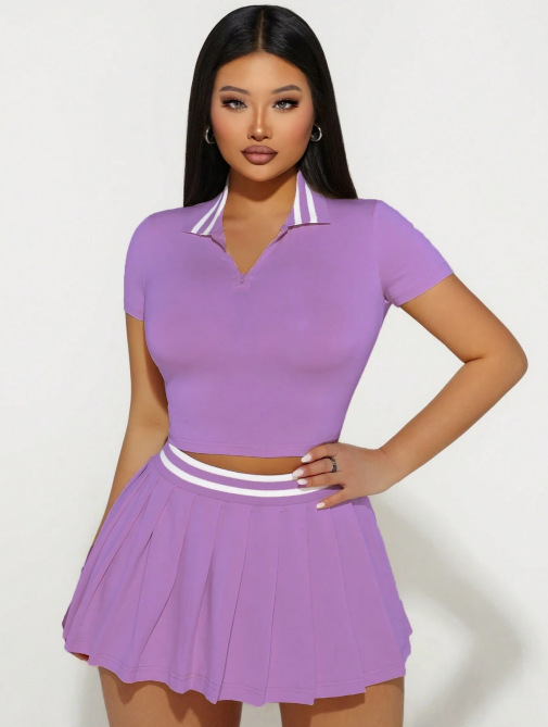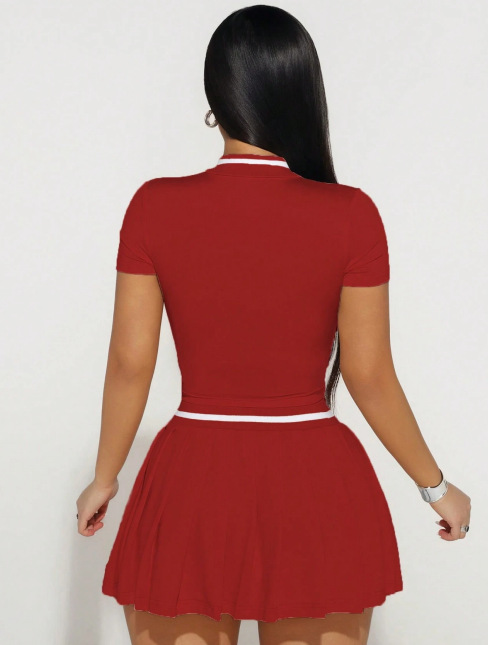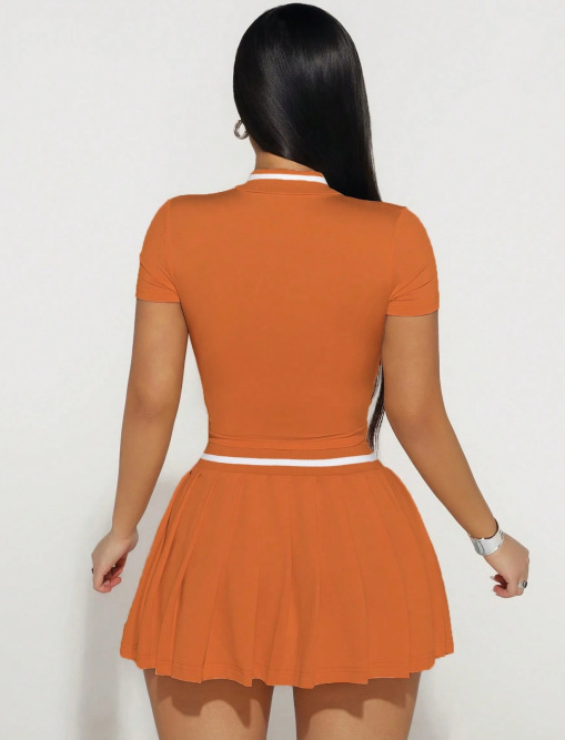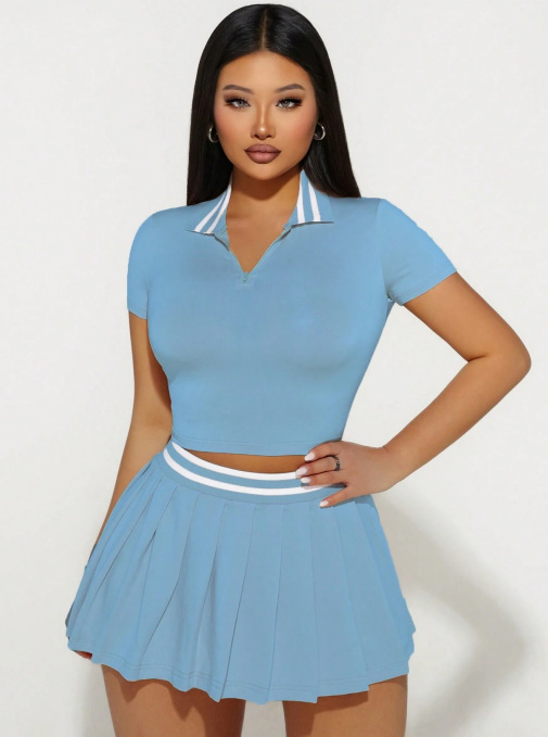 Two-Piece Set Skirt With Notched Collar And Short Sleeves